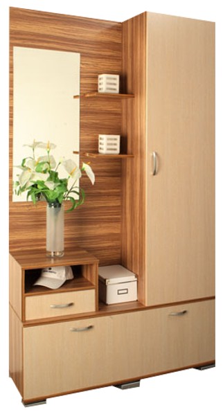 Представьте себе, насколько изменится ваша прихожая, если в ней будет стоять такой замечательный предмет меблировки как Шкаф комбинированный Кармен-3! Стоит шкаф недорого, а смотрится очень респектабельно. Нижняя часть представляет собой нишу с откидной дверцей, на просторных внутренних полках можно без проблем хранить всю семейную обувь. Над обувной нишей слева находится небольшая тумбочка с выдвижным ящиком, полочки для мелочей и зеркало прямоугольной формы. Правая часть - это шкаф для одежды с верхней полкой и штангой для вешалок. Выполнен комбинированный шкаф из дсп ламинированной.