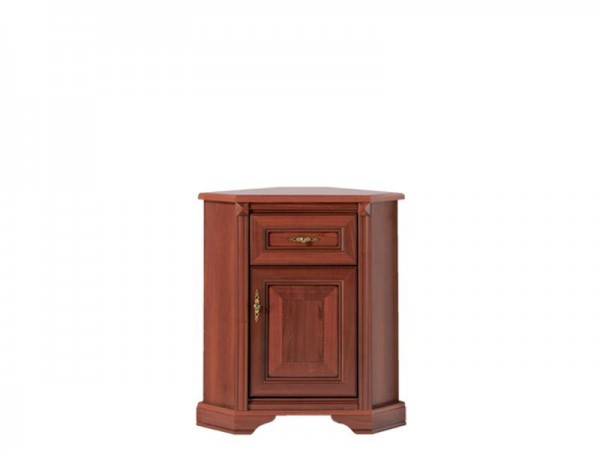 Комод угловой NKOM 1D1SN Стилиус - действительно классическая модель, в дизайне которой явно прослеживаются античные мотивы. Эта красивая угловая тумбочка идеальна не только для дома, но и для офиса. Прекрасное сочетание темного дерева, затейливых ручек и жесткой формы корпуса восхитят поклонников классической красоты и тех, кто ценит оригинальные решения. Этот надежный комод угловой входит в модульную систему "Стилиус", которая снискала многочисленные положительные отклики со стороны потребителей не только благодаря своему оригинальному дизайну, но и несомненному качеству изготовления. Если классика для Вас - это не просто пустой звук, а стиль жизни, предлагаемый нашим магазином комод - та самая модель, которая исключительно понравится Вам, ведь его можно смело назвать эксклюзивным в своей нише.