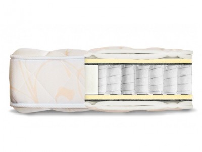 Матрас с ортопедическим эффектом на основе блока независимых пружин. Каждая пружина подстраивается под контуры вашего тела, сохраняя позвоночник в физиологически правильном положении. Слой высокоэластичной пены делает матрас мягким и комфортным. Покрытие матраса содержит антибактериальную пропитку, противодействующую размножению пылевых клещей.