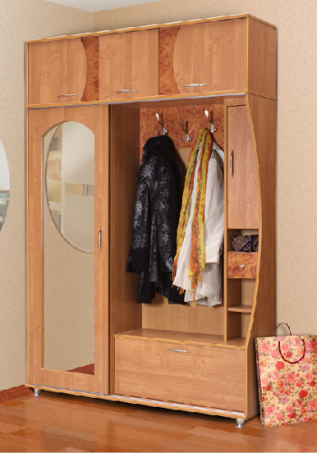 Прихожая бывает левосторонней (на фото) и правосторонней (по местоположению зеркальной двери).
