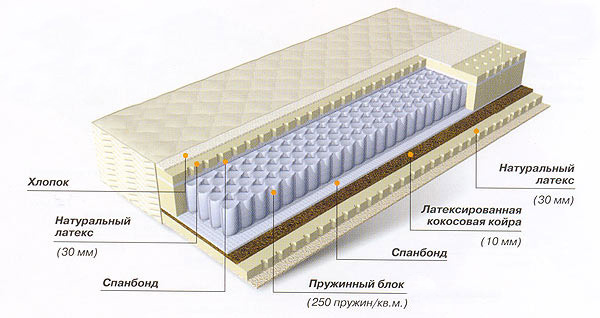Матрас с разной жесткостью сторон на основе блока независимых пружин EVS 500, который равномерно распределяет нагрузку по всей горизонтальной поверхности матраса и обеспечивает направленную поддержку позвоночника. В качестве наполнителей с одной стороны используется натуральный латекс, а с другой – койра и натуральный латекс. Оптимальный баланс анатомических и ортопедических характеристик.