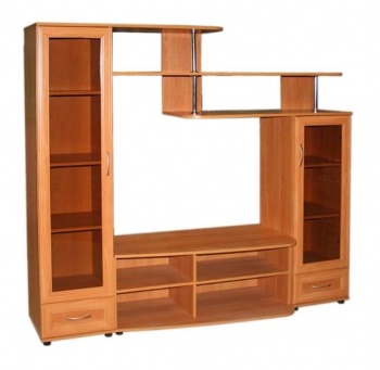 Стойка для ТВ-С10 превосходный выбор для Вашей гостиной! Тщательно продуманный дизайн и высокая функциональность являются отличием этой модели от большинства других. В нише под широкоформатный ТВ легко поместится практически любой телевизор. Два шкафчика из ламинированной ДСП с витринами из тонированного стекла и высокими полками позволяют разместить внутри ТВ-аппаратуру, книги, журналы, красивые мелочи для интерьера или сувениры. На четырех просторных полках под телевизором легко поместится вся медиа библиотека. Стойка так же оснащена двумя выдвижными ящиками на металлических направляющих и тремя верхними полками.